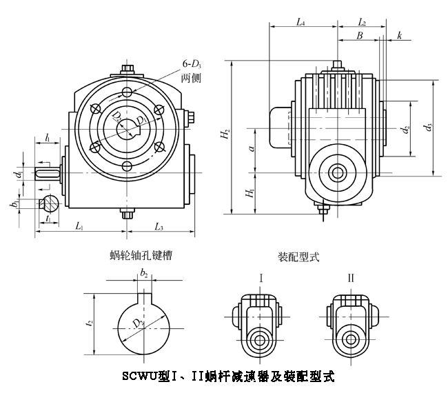 a、SCWU 型—蝸桿在蝸輪之下的軸裝式蝸輪蝸桿減速機;